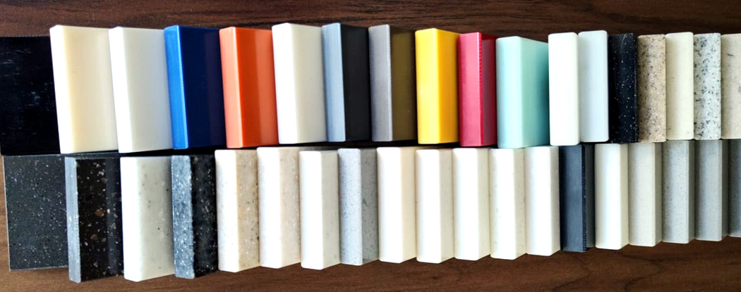 • Countertops, Kitchen Countertop, wall coverings, wainscoting, vanities, aprons, windows sills, thresholds, shelves, fireplace surround, bar tops, furniture, backslashes, tabletops, shower walls, tub surrounds, sinks, and more Combined with Cladhub Facade Trading Co. ideal hygienic features and reparability, there are limitless possible applications. The comprehensive selection of colors and accessories, like integrated Sinks and Laboratory Bowls, allows you to run free when designing with Osaka Solid Surface 100% Acrylic Solid Surface